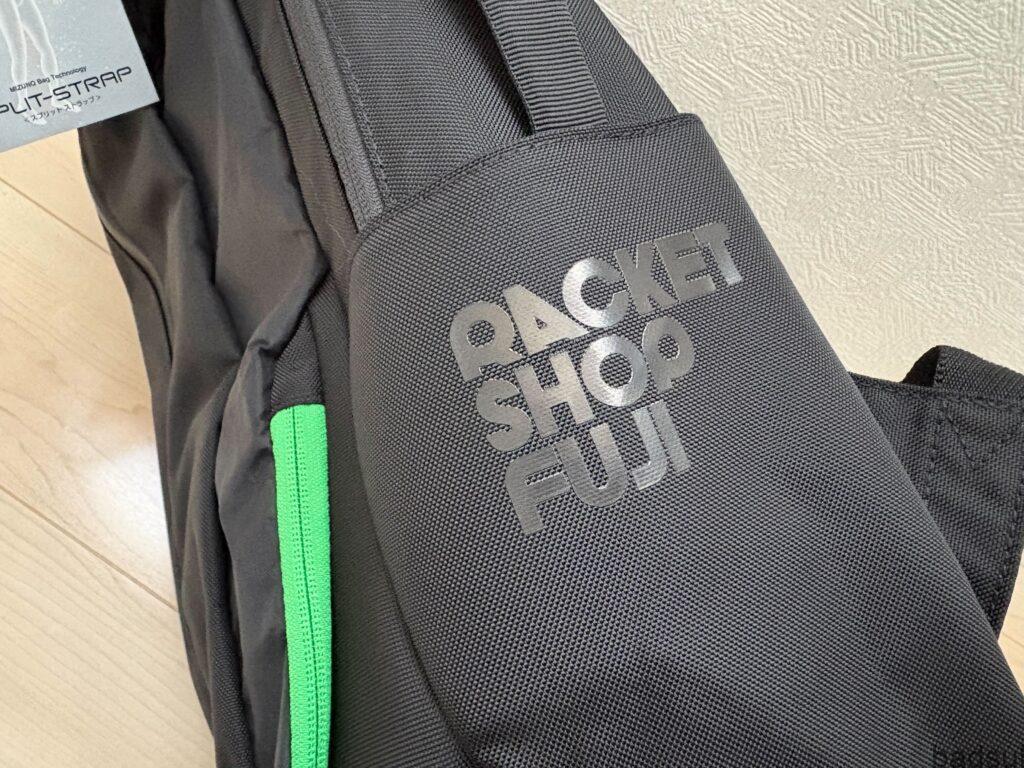 また、サイドにはラケットショップフジのロゴが印字されています。