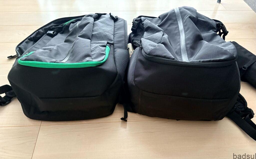 TECK PACKとTECK PACK2は容量が異なりますので、比較してみると差が分かりますね。